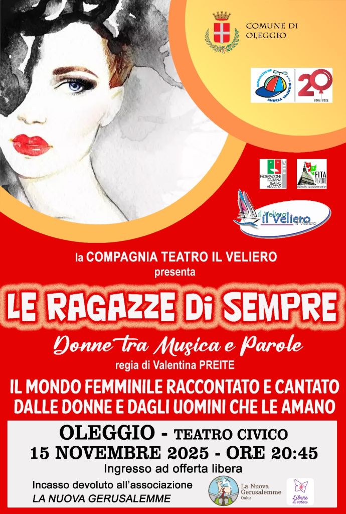 LE RAGAZZE DI SEMPRE 15 novembre 2025Oleggio – NovaraUn evento tra musica e parole promosso dall’associazione Andrea Valentini a sostegno di Libere di volare.Per info: ciao@liberedivolare.it